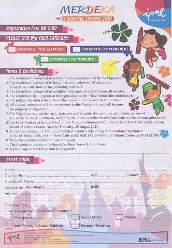 Merdeka poster drawing & coloring contest on 13/8/16!